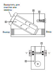 Индикатор загрязнения работает при перепаде давления на фильтрующем элементе в 20 и 35 бар. Грязь накапливается на фильтре (E). Когда перепад давления между в портами превышает силу сцепления подпружиненного шарика (D), поршень (C) выдвигается. После очистки фильтра поршень (C) возвращается в исходное положение. Примечания: стрелки показывают направление потока, канал (A) соединяет конец X поршня (C) с левой стороны от фильтра (E), канал (B) соединяет шток Y поршня (C) с левой стороны от фильтра (E) Скорость потока и коэффициент открытой площади фильтрующего элемента к диаметру трубы: