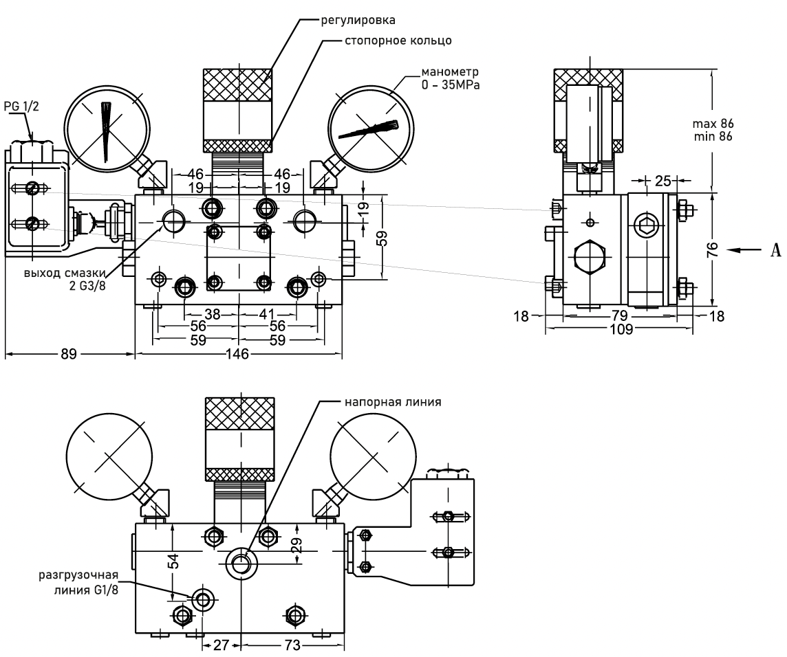 Это направит управляющий поток к одному торцу управляющего поршня и соединит другой с баком, этим переводя поток от насоса в другую нагнетательную магистраль с большим потоком в бак.