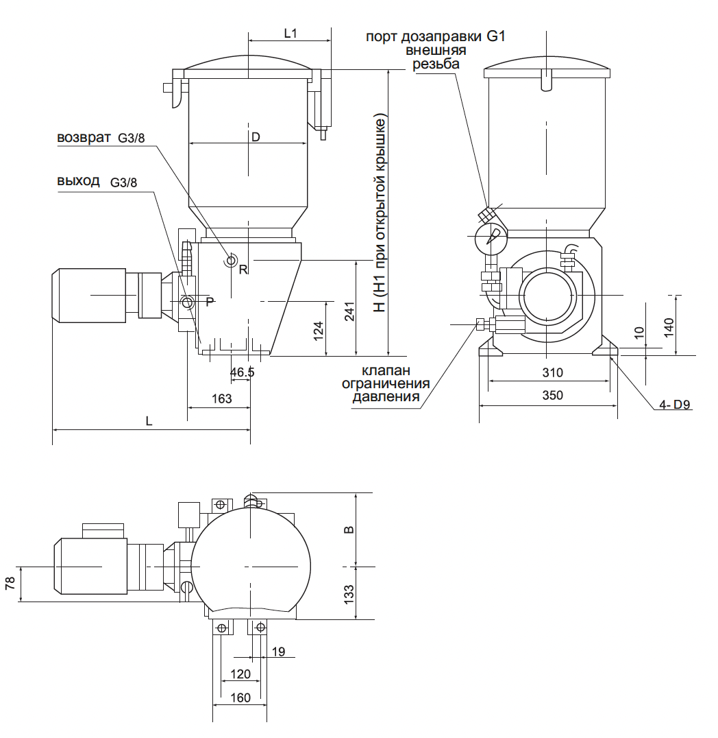Подача: 7, 14 и 22 л/ч в зависимости от числа оборотов редуктора