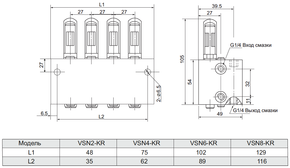 Распределители VSN-KR предназначены для двухлинейных систем централизованной смазки с номинальным давлением до 40 МПа.