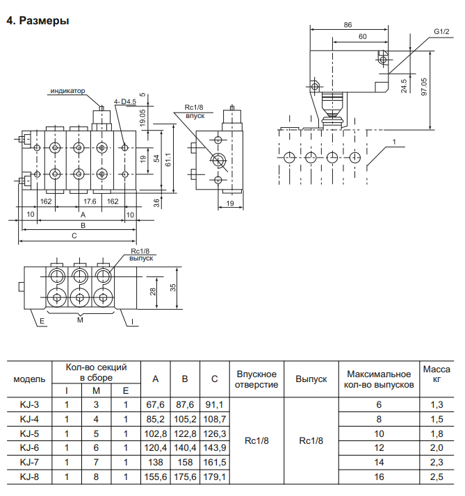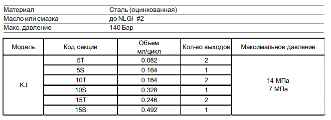 Клапанные секции работают в заранее установленной «прогрессивной» последовательности. Во время работы поршень в секции должен завершить полный (ход) цикл нагнетания, прежде чем другой поршень начнет работать. Пока смазка подается под давлением на входную секцию распределителя, распределитель будет продолжать работать. Когда поток смазки к впускному блоку прерывается, движение поршня прекращается. Когда поток возобновляется, движение поршня начинается в той же точке цикла нагнетания. Подающие линии подают смазку от распределителя к точкам смазки. Если одна из линий, подающих смазку к точке смазки заблокируется, распределитель перестанет работать. Имеются индикаторы для оповещения о блокировке.