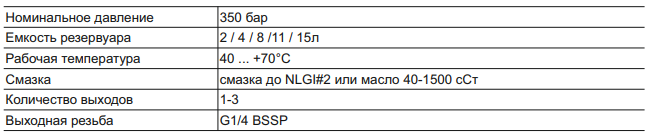 • Высокое рабочее давление 350 бар • Подходит для смазки малой и средней техники • Компактный и простой в установке • Прозрачный высокопрочный резервуар • Встроенная плата управления проста в использовании • До трех (плунжерных) насосных элементов • Можно добавить датчик низкого уровня масла